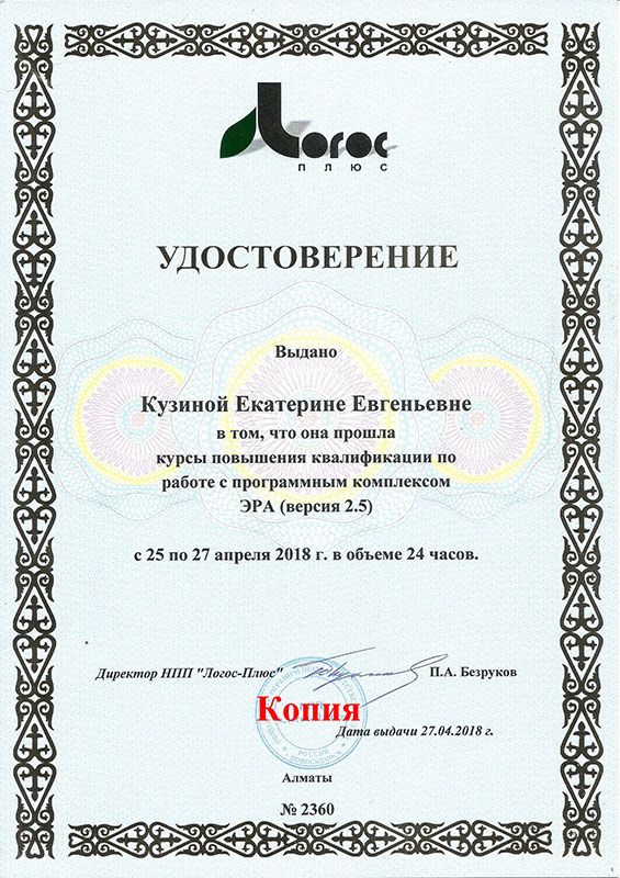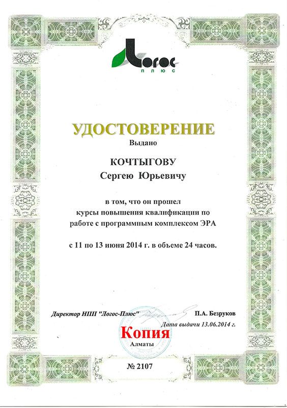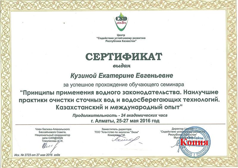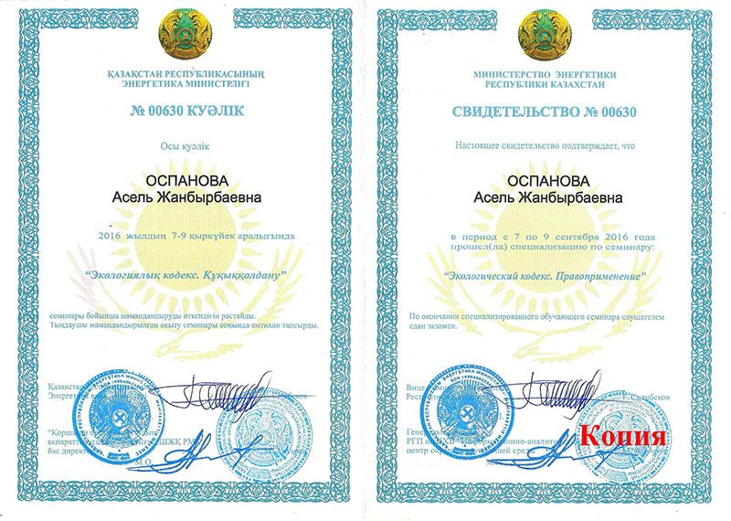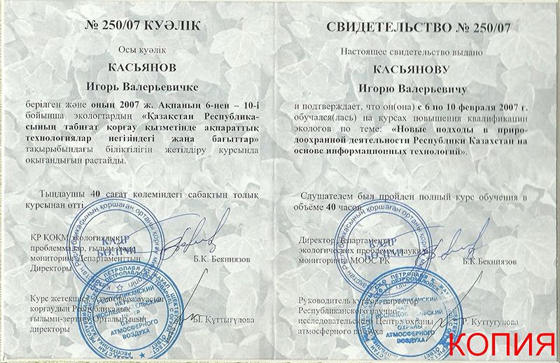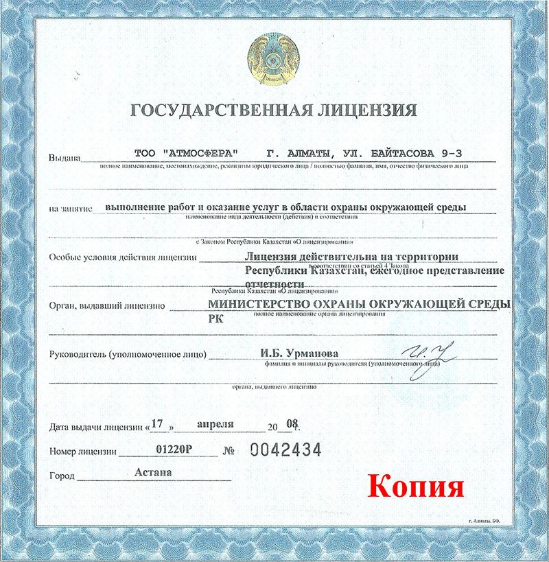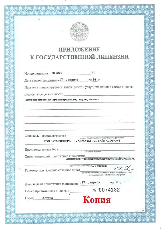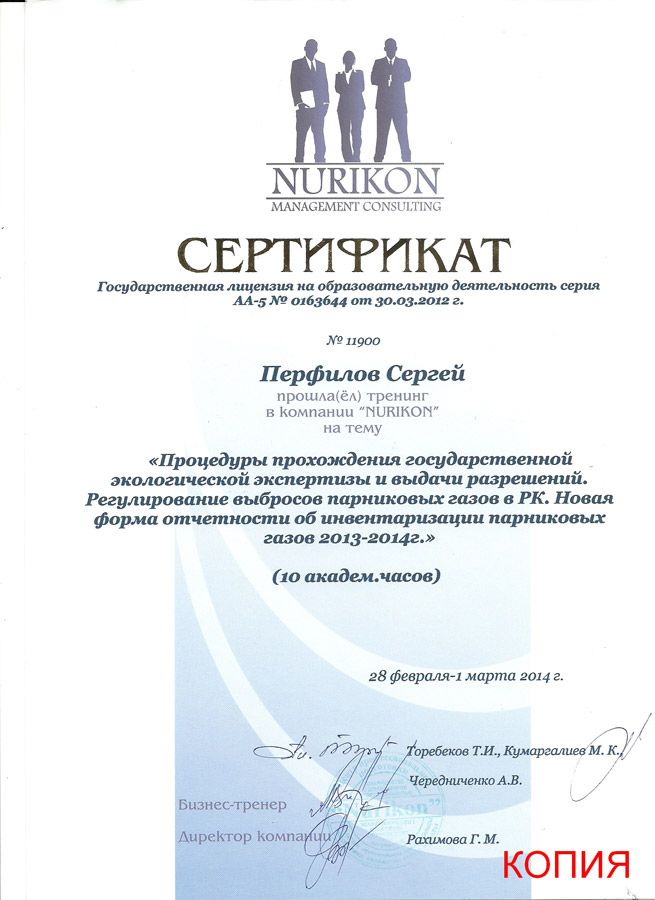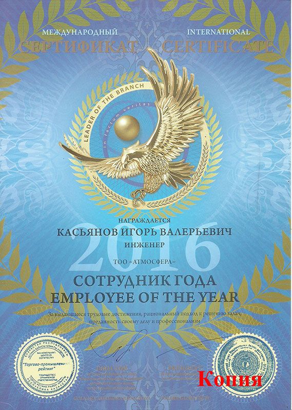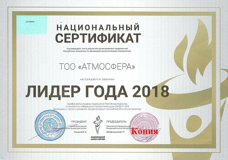 Сотрудники нашей компании постоянно повышают свой профессиональный уровень. За время деятельно ТОО «Атмосфера» получено множество сертификатов и удостоверений о прохождении курсов повышения квалификации от государственных и ведомственных организаций.
